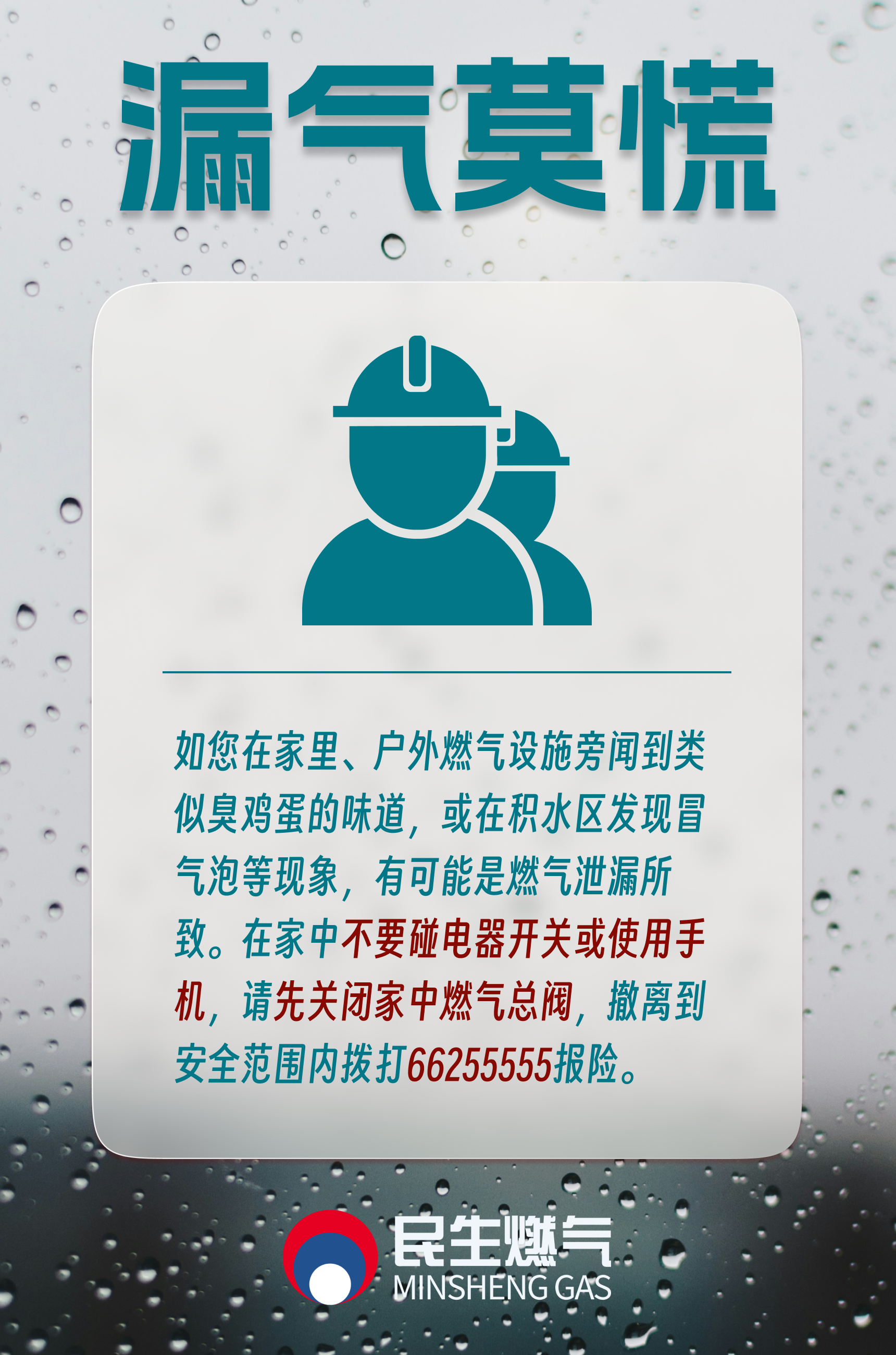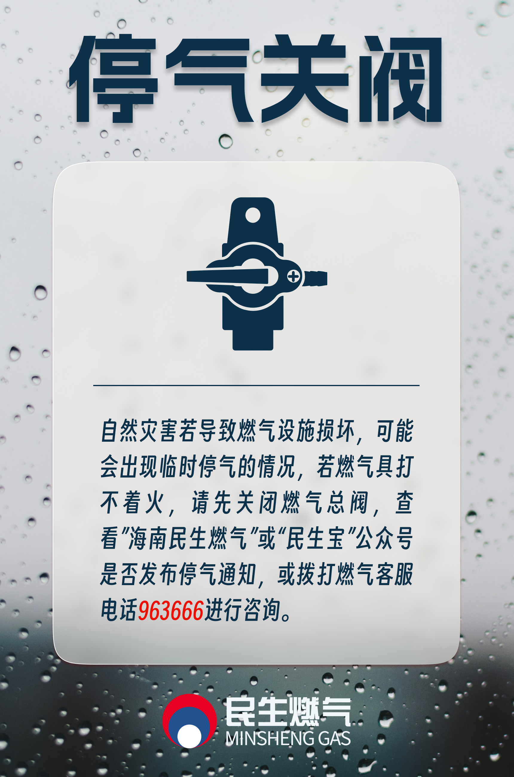 為確保臺(tái)風(fēng)期間廣大用戶日常生活用氣需求和用氣安全,海南民生燃?xì)馓嵝颜?qǐng)您,根據(jù)需求提前做好充值購(gòu)氣和安全防范。風(fēng)災(zāi)期間一旦發(fā)現(xiàn)用氣異常情況,請(qǐng)立即撥打公司24小時(shí)服務(wù)熱線963666或66255555聯(lián)系專業(yè)人員進(jìn)行維修。